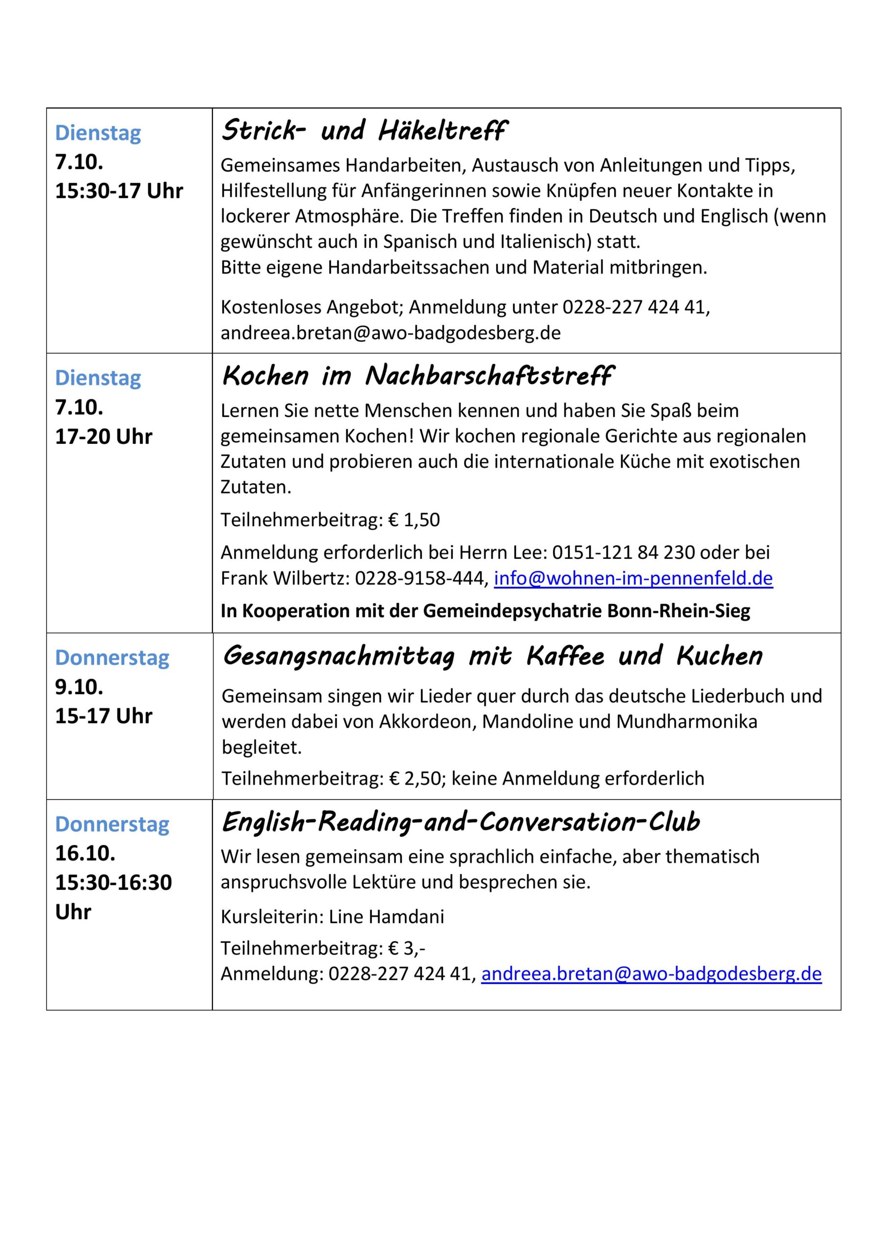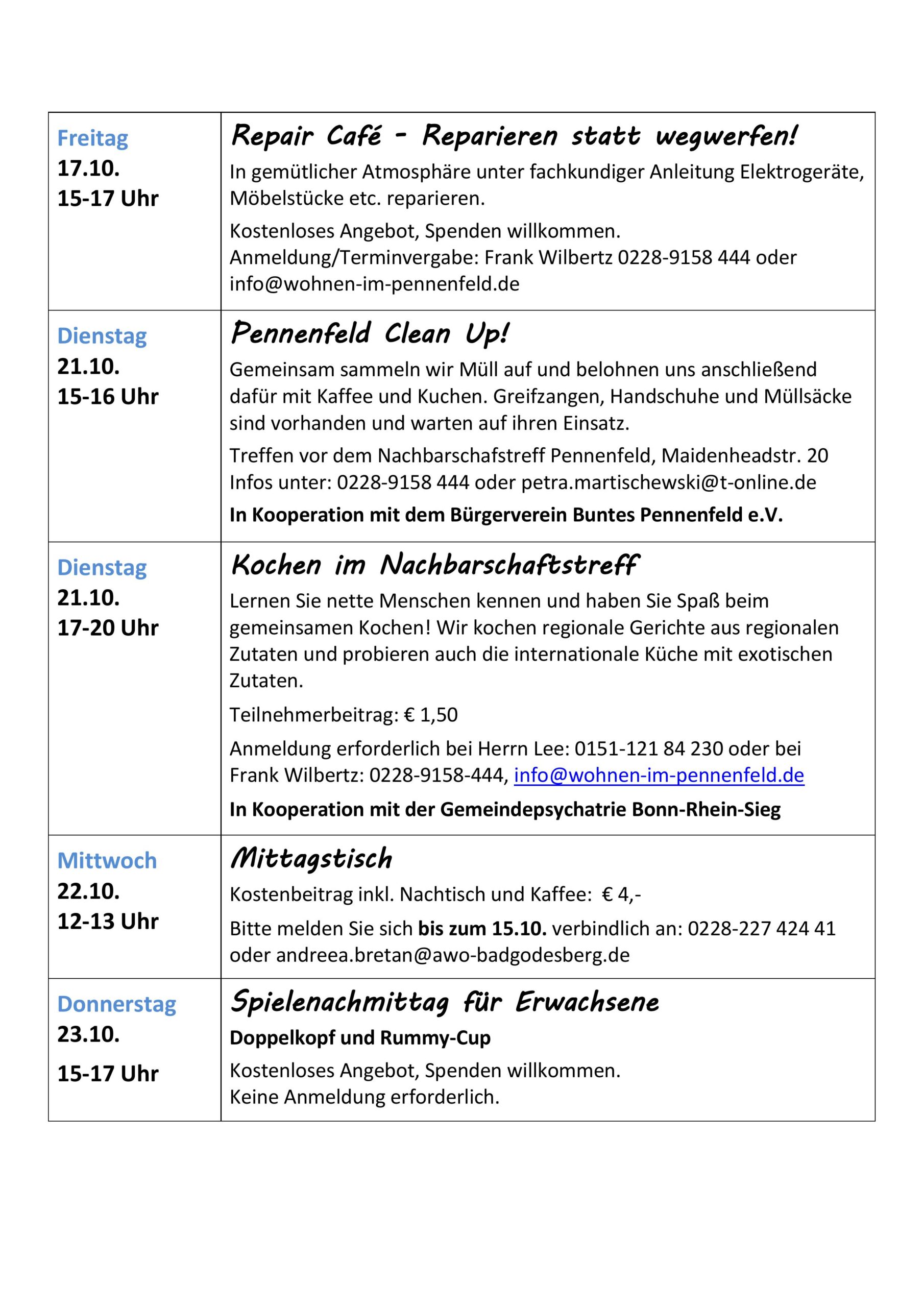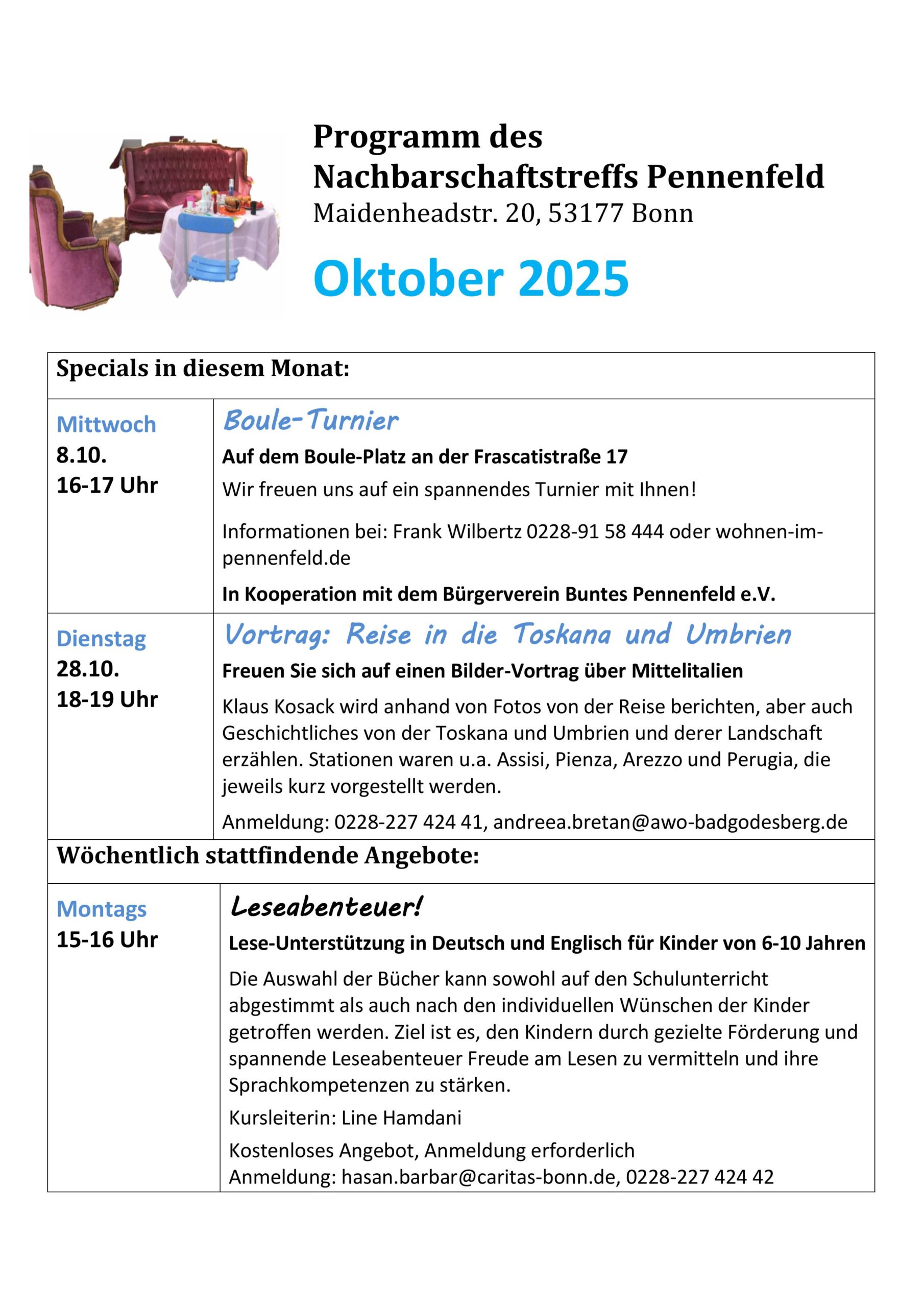 Auch im Oktober sorgt dass Quartiersmanagement Pennenfeld im und rund um den Nachbarschaftstreff Pennenfeld für ein abwechslungsreiches Angebot wilbertz@vebowag.de2025-10-02T15:53:29+02:002. Oktober 2025|Allgemein| Ähnliche Beiträge