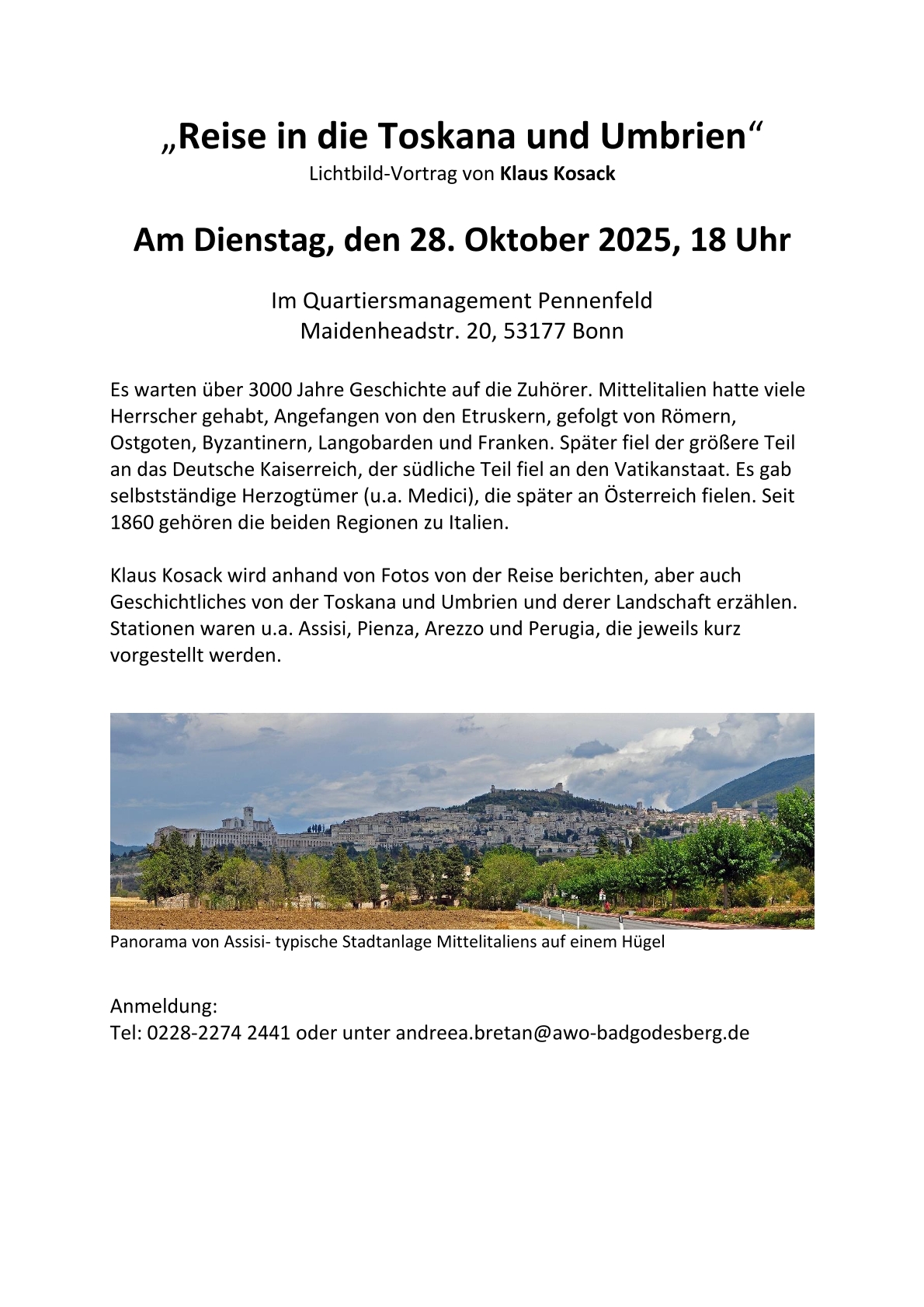 Lichtbildvortrag über die Toskana und Umbrien am 28.10.2025, 18 Uhr wilbertz@vebowag.de2025-10-28T16:01:23+01:002. Oktober 2025|Allgemein| Ähnliche Beiträge